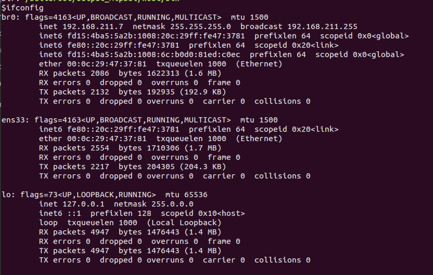 我们这步做的是在 ubuntu 虚拟机里面配置一个网桥 br0 ,一端链接宿主机分配,另一端链接 qemu 虚拟机。