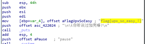 通用脱壳软件脱壳一下,IDA打开main函数中直接就能找到flag